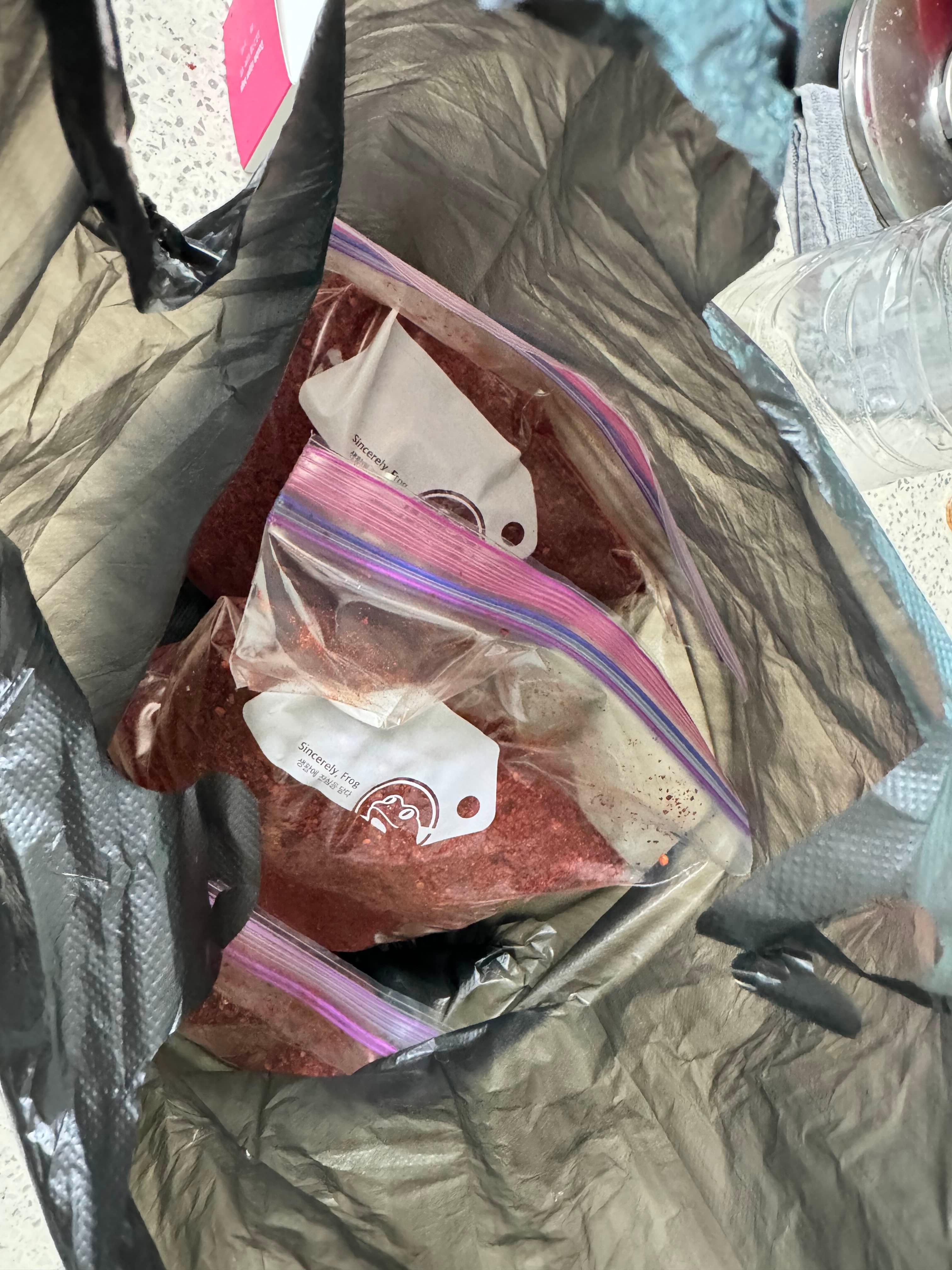 지퍼백에 담은 고춧가루를 검정비닐봉지나 보냉팩으로 한 번 더 감싸세요.